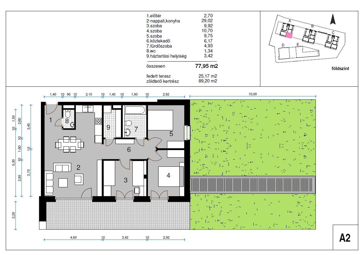 A jelen adatok tájékoztató jellegűek, ezért a Beruházó azok változásával, vagy bármely attól való eltéréssel kapcsolatban semmilyen kötelezettséget, vagy felelősséget nem vállal. Az ábrázolt berendezési tárgyak és bútorok, a burkolatok megjelenése nem képezi a szerződés tárgyát. A pontos felszereltség műszaki leírás szerint. A területek burkolatlan felületekre értendőek. A nettó területek helyiségeknek a falak közötti területei. A bruttó területek tartalmazzák a válaszfalak alatti területet. Jelen rajzon szereplő méretek a kiviteli tervek szerint módosulhatnak.