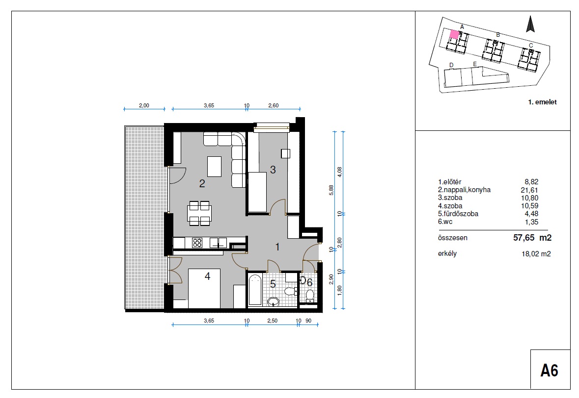 A jelen adatok tájékoztató jellegűek, ezért a Beruházó azok változásával, vagy bármely attól való eltéréssel kapcsolatban semmilyen kötelezettséget, vagy felelősséget nem vállal. Az ábrázolt berendezési tárgyak és bútorok, a burkolatok megjelenése nem képezi a szerződés tárgyát. A pontos felszereltség műszaki leírás szerint. A területek burkolatlan felületekre értendőek. A nettó területek helyiségeknek a falak közötti területei. A bruttó területek tartalmazzák a válaszfalak alatti területet. Jelen rajzon szereplő méretek a kiviteli tervek szerint módosulhatnak.