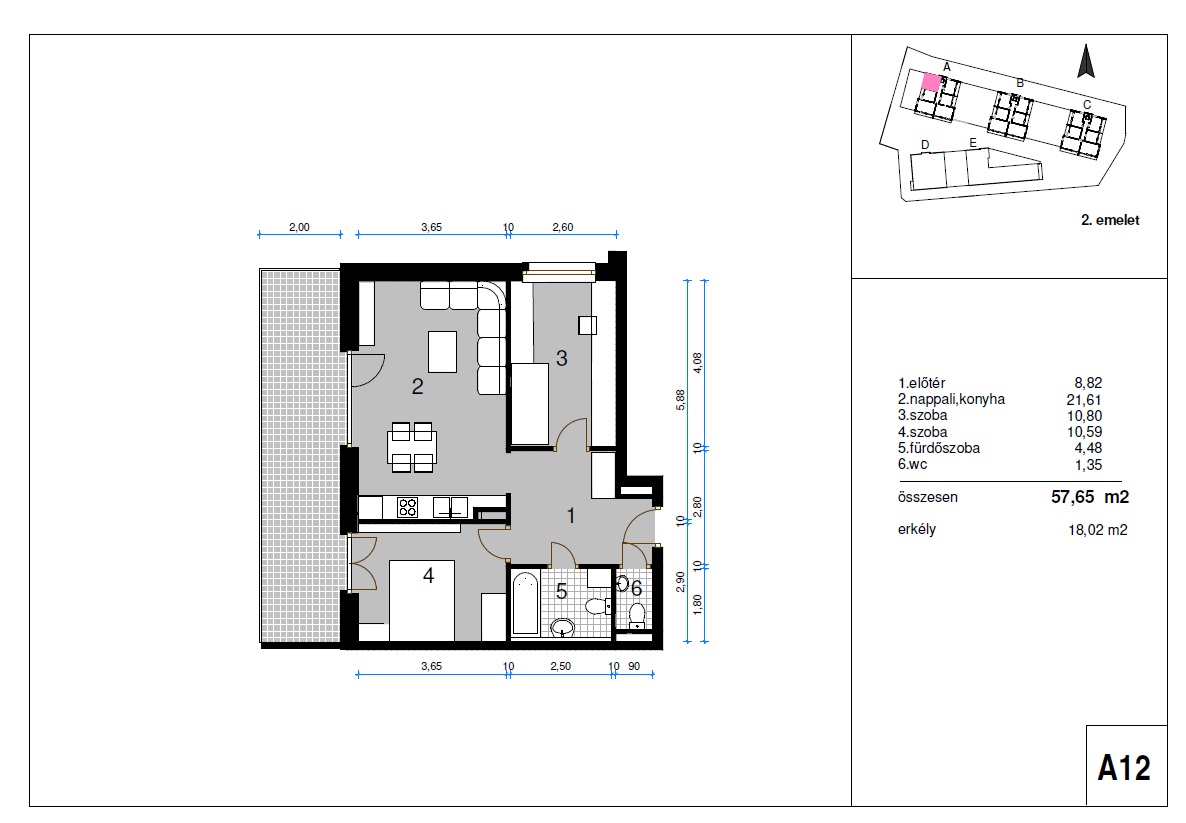 A jelen adatok tájékoztató jellegűek, ezért a Beruházó azok változásával, vagy bármely attól való eltéréssel kapcsolatban semmilyen kötelezettséget, vagy felelősséget nem vállal. Az ábrázolt berendezési tárgyak és bútorok, a burkolatok megjelenése nem képezi a szerződés tárgyát. A pontos felszereltség műszaki leírás szerint. A területek burkolatlan felületekre értendőek. A nettó területek helyiségeknek a falak közötti területei. A bruttó területek tartalmazzák a válaszfalak alatti területet. Jelen rajzon szereplő méretek a kiviteli tervek szerint módosulhatnak.